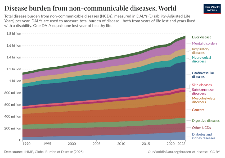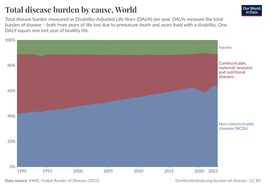 Max Roser, Hannah Ritchie, and Fiona Spooner (2021) - “Burden of Disease” Published online at OurWorldinData.org. Retrieved from: 'https://data-chartpreview-unify.owid.pages.dev/burden-of-disease' [Online Resource]BibTeX citation