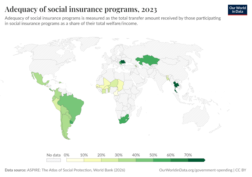 “Data Page: Adequacy of social insurance programs”. Our World in Data (2026). Data adapted from ASPIRE: The Atlas of Social Protection, World Bank. Retrieved from https://data-chartpreview-unify.owid.pages.dev:8789/20260202-181317/grapher/adequacy-of-social-insurance-programs.html [online resource] (archived on February 2, 2026).How to cite this data