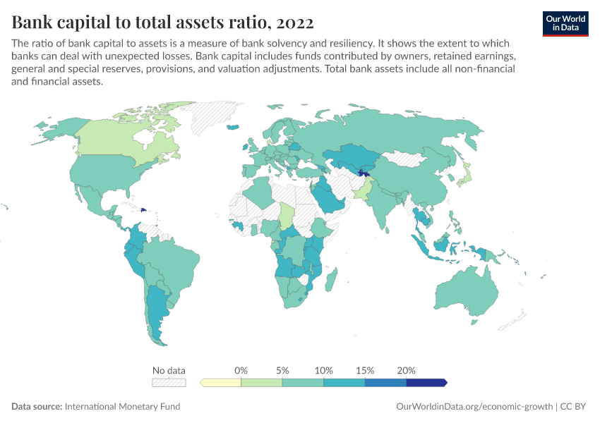 “Data Page: Bank capital to total assets ratio”. Our World in Data (2026). Data adapted from International Monetary Fund. Retrieved from https://data-chartpreview-unify.owid.pages.dev:8789/20251120-211749/grapher/bank-capital-to-total-assets-ratio.html [online resource] (archived on November 20, 2025).How to cite this data