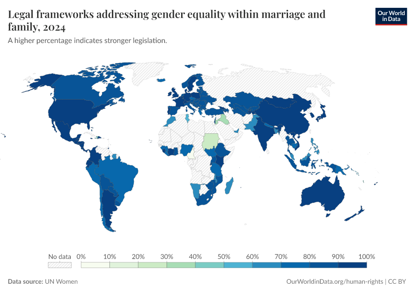 “Data Page: Legal frameworks addressing gender equality within marriage and family”. Our World in Data (2026). Data adapted from UN Women. Retrieved from https://data-chartpreview-unify.owid.pages.dev:8789/20260130-180113/grapher/legal-frameworks-gender-equality-within-marriage-and-family.html [online resource] (archived on January 30, 2026).How to cite this data