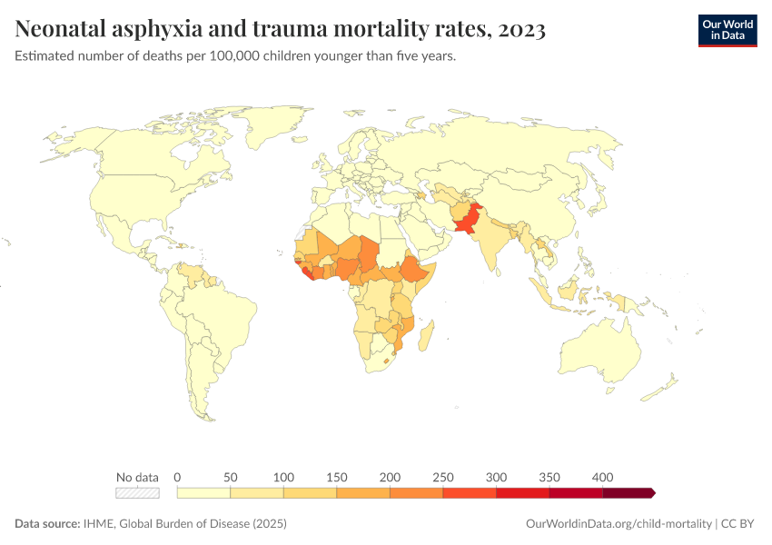 IHME, Global Burden of Disease (2025) – with major processing by Our World in Data. “Neonatal asphyxia and trauma mortality rates” [dataset]. IHME, Global Burden of Disease, “Global Burden of Disease - Deaths” [original data]. Retrieved February 27, 2026 from https://data-chartpreview-unify.owid.pages.dev:8789/20260211-174736/grapher/mortality-neonatal-asphyxia-and-trauma.html (archived on February 11, 2026).