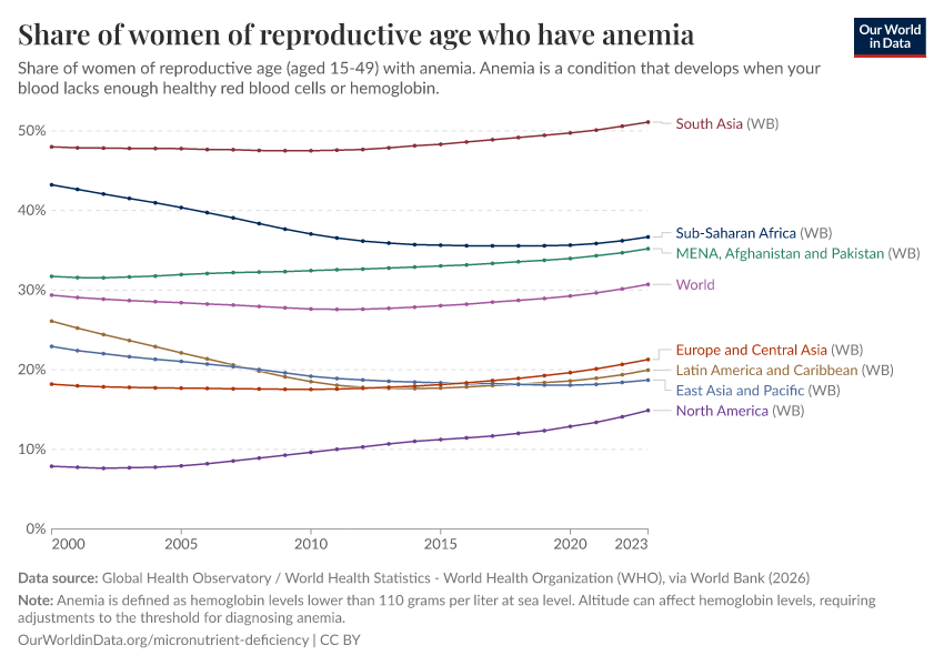 In the chart, we see the prevalence of anemia in women of reproductive age.