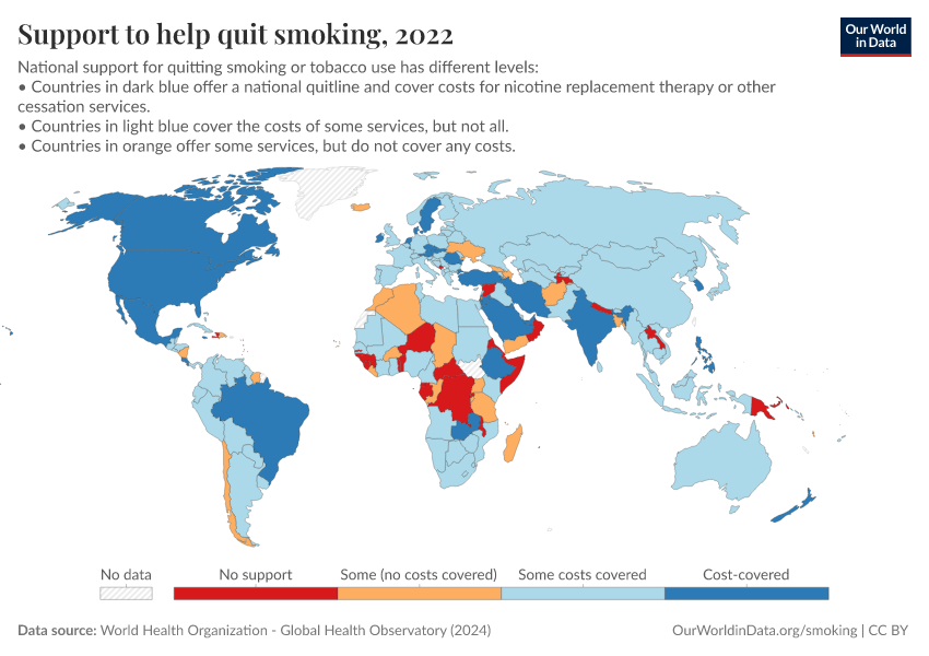 Hannah Ritchie and Max Roser (2023) - “Smoking” Published online at OurWorldinData.org. Retrieved from: 'https://data-chartpreview-unify.owid.pages.dev/smoking' [Online Resource]BibTeX citation