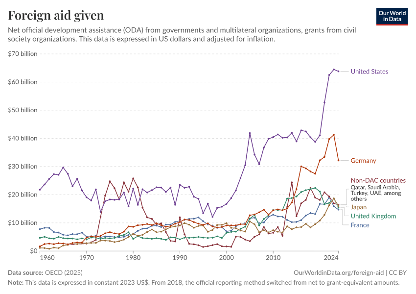 Simon van Teutem and Pablo Arriagada (2025) - “What is foreign aid? How “Official Development Assistance” is measured” Published online at OurWorldinData.org. Retrieved from: 'https://data-chartpreview-unify.owid.pages.dev:8789/20260223-070107/what-is-foreign-aid.html' [Online Resource] (archived on February 23, 2026).BibTeX citation